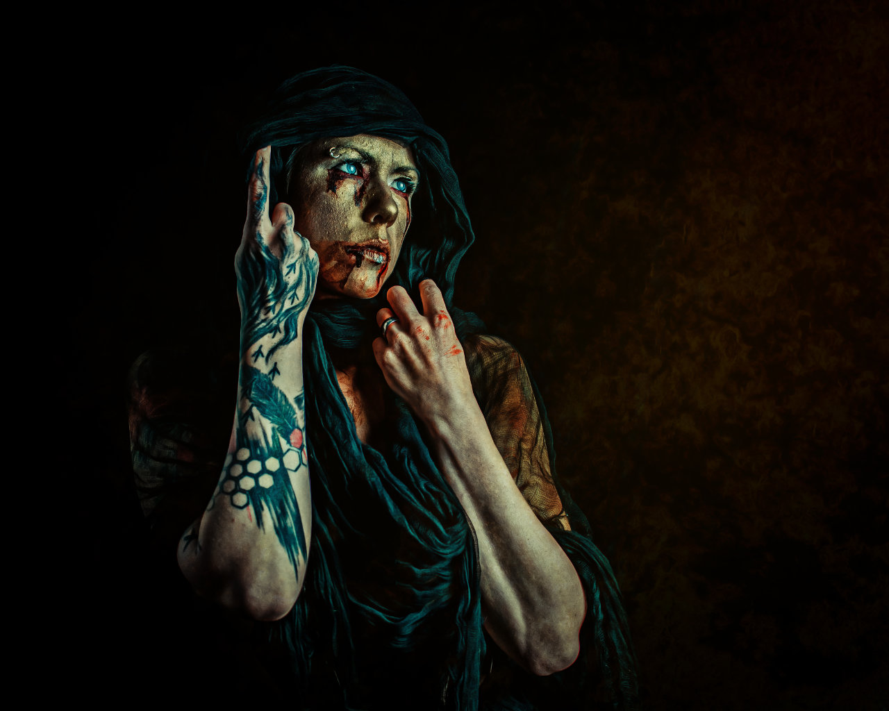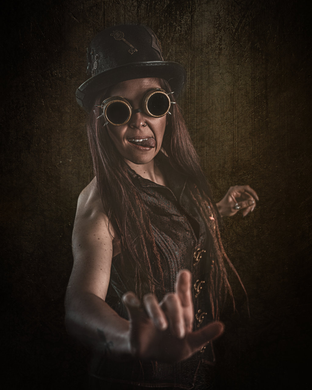 Mein Fundus steckt voller Kostüme, Requisiten und Ideen die darauf warten, lebendig zu werden. Blattgold, Kunstblut, Bodypainting, historische Gewänder, Steampunk-Details — alles da, alles einsatzbereit.